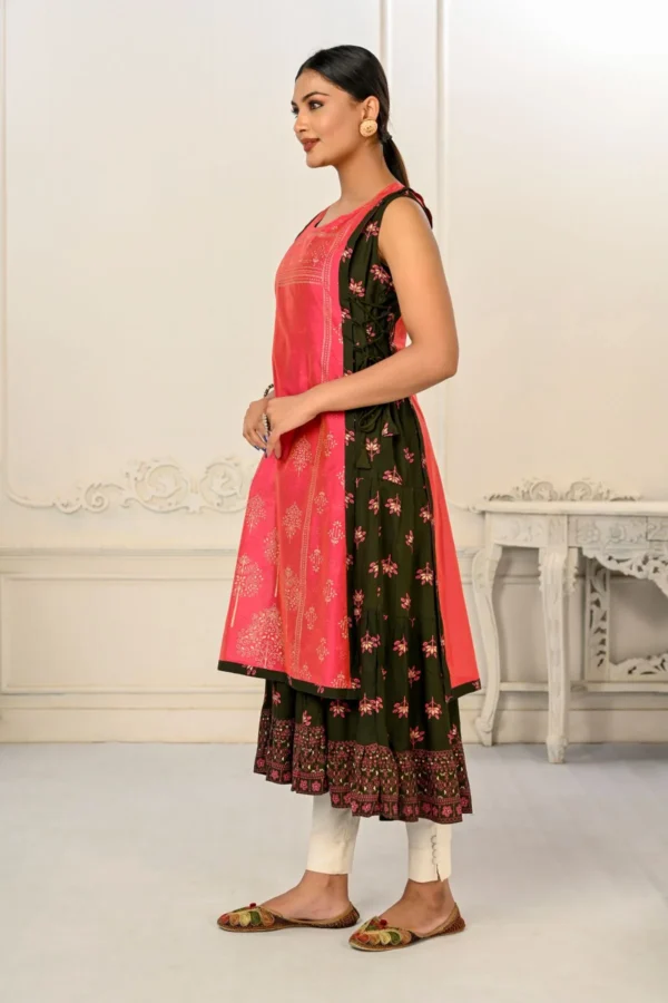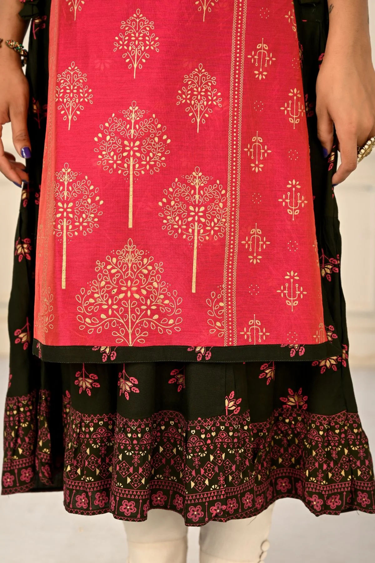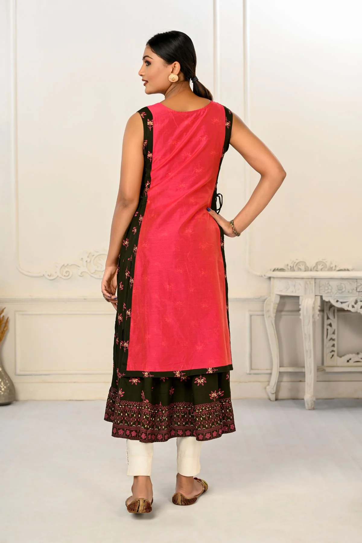 2 Layered Inner Cotton And Outward Jacket Chanderi Kurti – Pink And Maroon