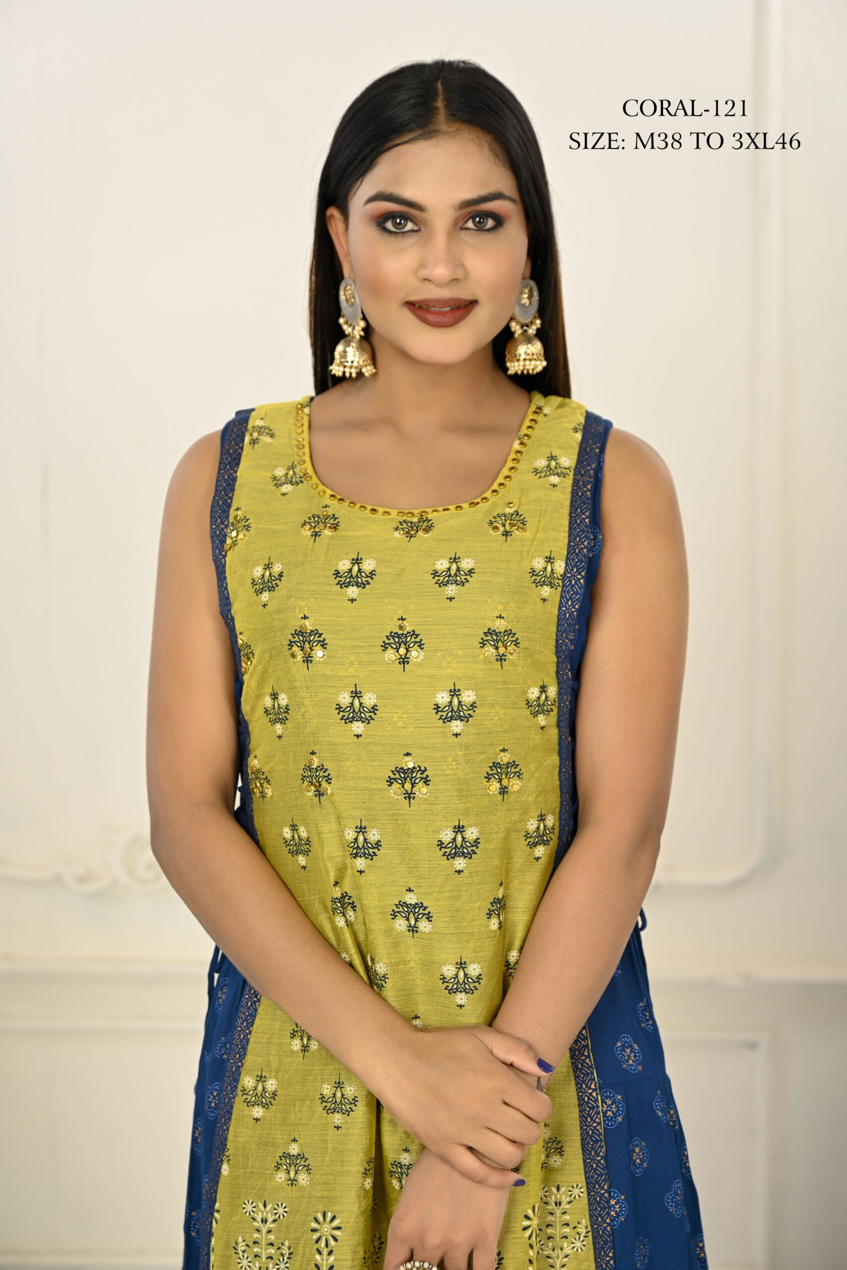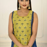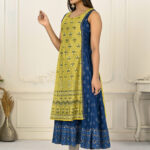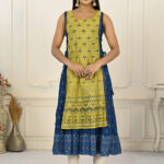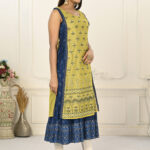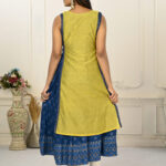 2 Layered Inner Cotton And Outward Jacket Chanderi Kurti – Yellow & Blue
