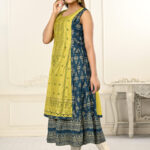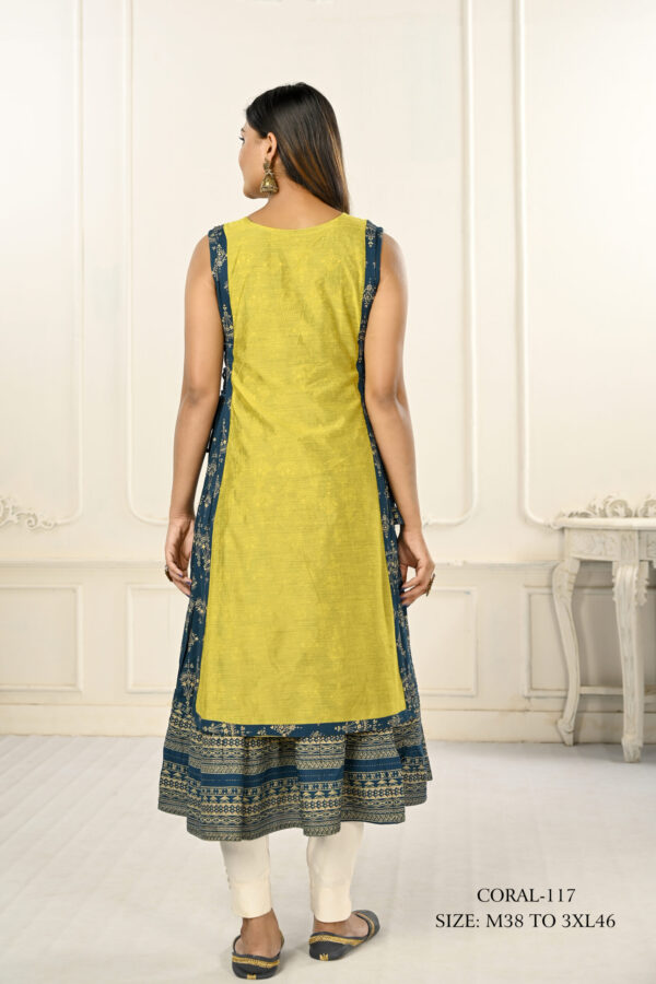 2 Layered Inner Cotton And Outward Jacket Chanderi Kurti – Yellow & Blue
