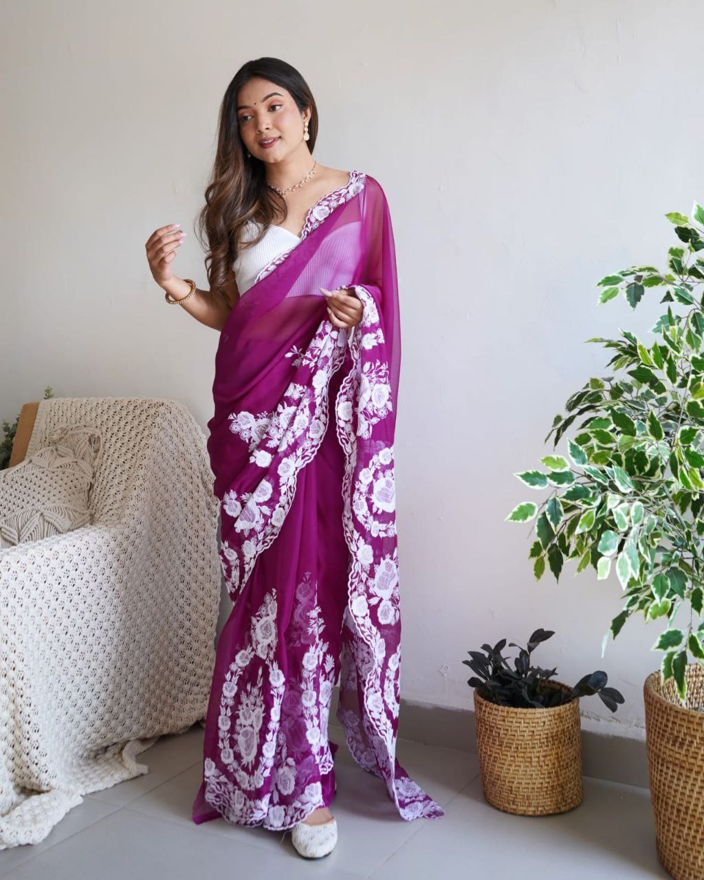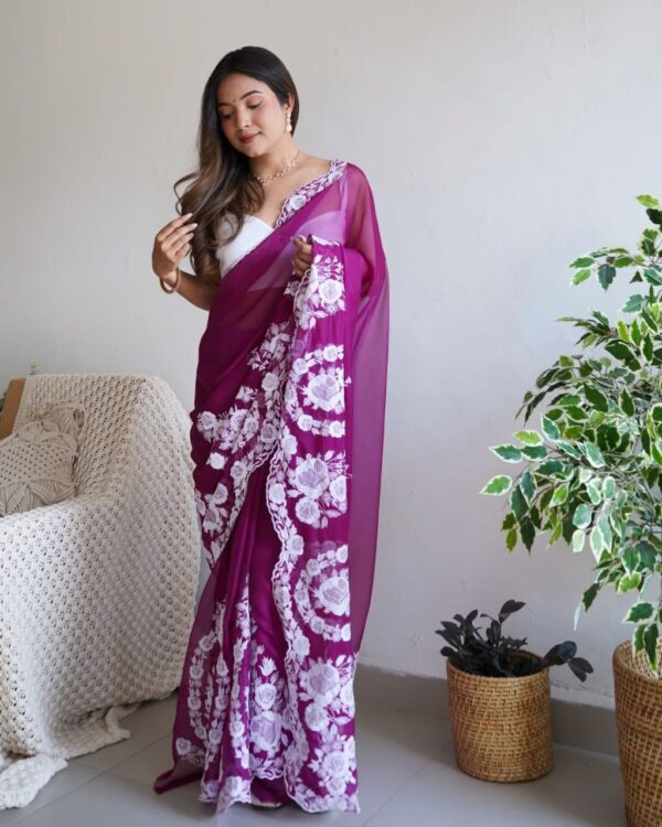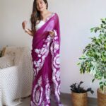 This collection features Thai Organza Silk sarees with intricate thread embroidery work and a cutwork border, highlighting the craftsmanship. The sarees are pure and come in a variety of 4 beautiful colors. The accompanying blouse is made of heavy sartin and features a stunning designer floral digital print. The blouse is unstitched with a pattern of 0.80. Overall, it sounds like a sophisticated and stylish collection.