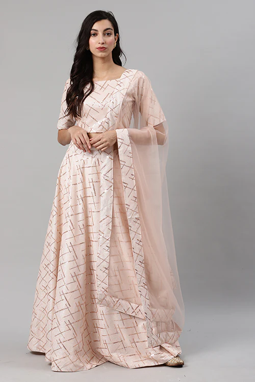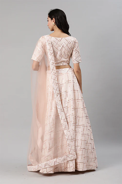 Introducing our Peach Silk Sequins Embroidered Lehenga Choli Set, a masterpiece of artistry and sophistication that defines elegance with every detail. This enchanting ensemble is meticulously designed to captivate hearts and elevate your presence at any special occasion.