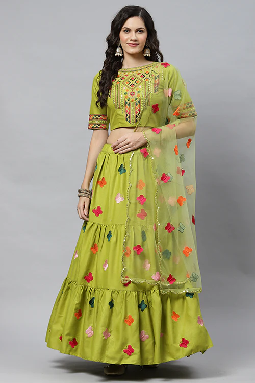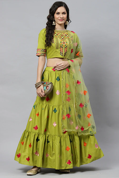 Cotton Multi Embroidered Work Lehenga.