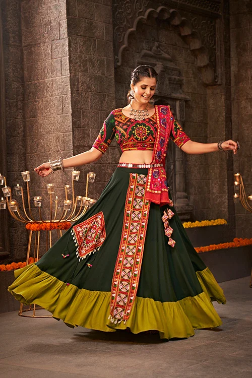 Green Color Embroidered Ethnic Tradtional Navratri Special Chaniya Choli