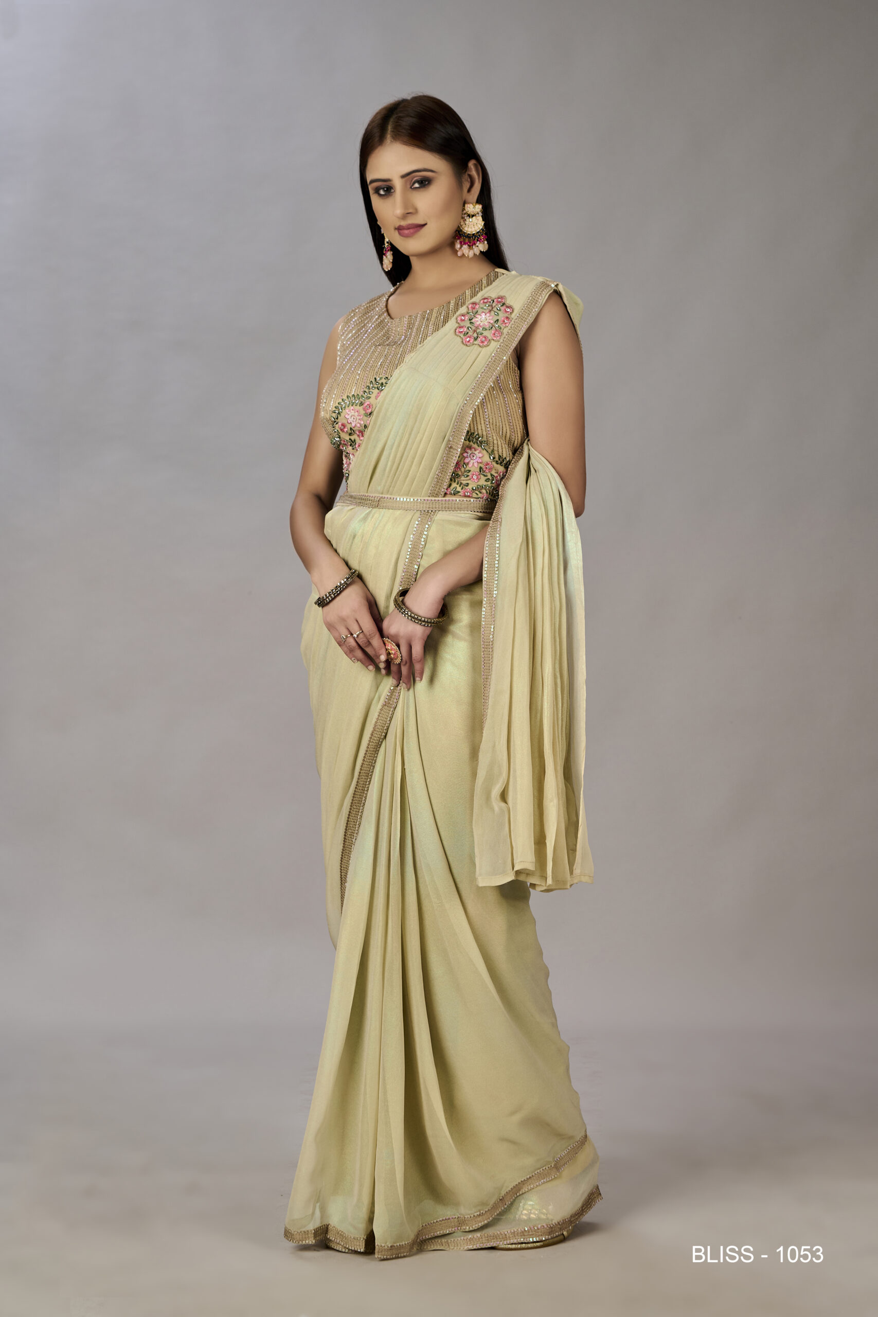 Light Green Shimmer Georgettes With Delicate Embroidery Saree