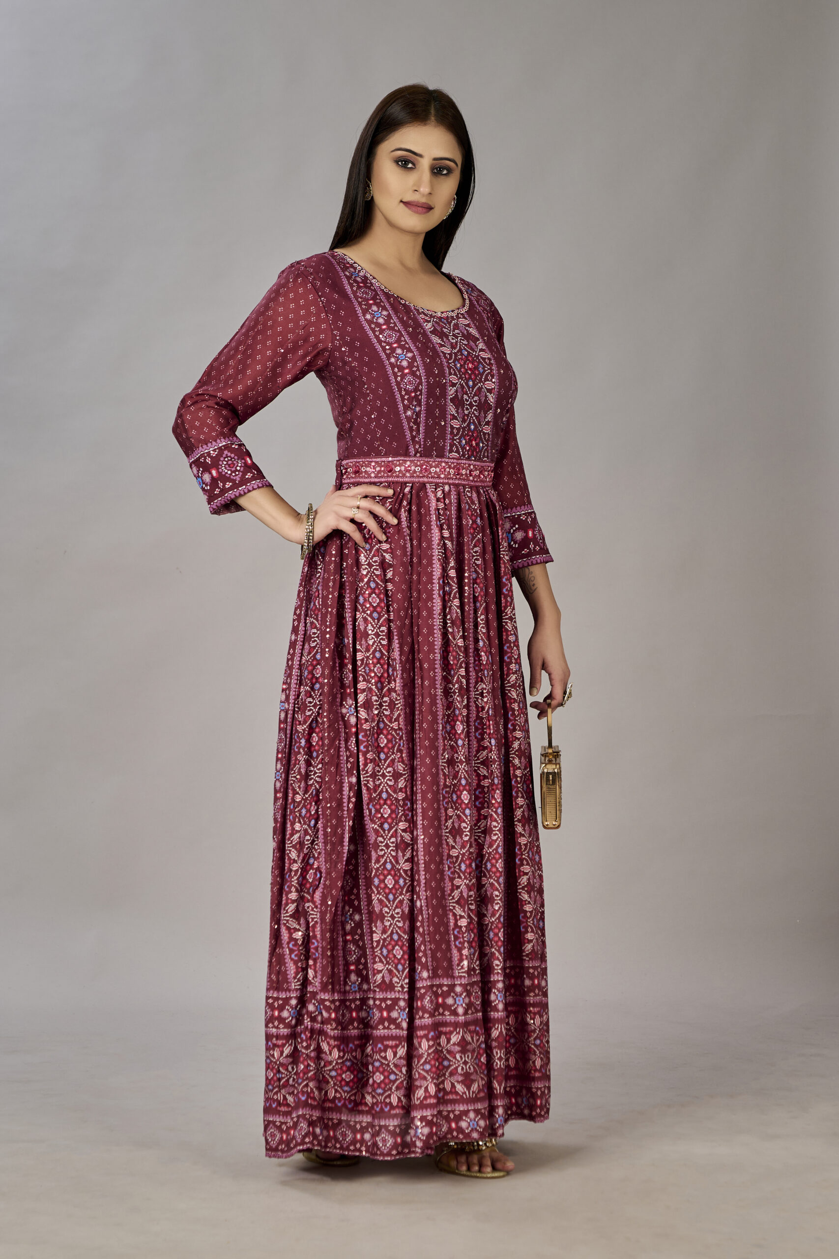- Work: Heavy Gown Digital Print Embroidered & Sequins
