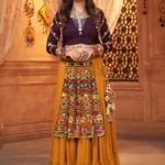 Featuring traditional Koti style and mustard yellow, this Chaniya Choli Collection will take your traditional look to the next level. Its unique embroidered pattern is sure to make you stand out at any event.