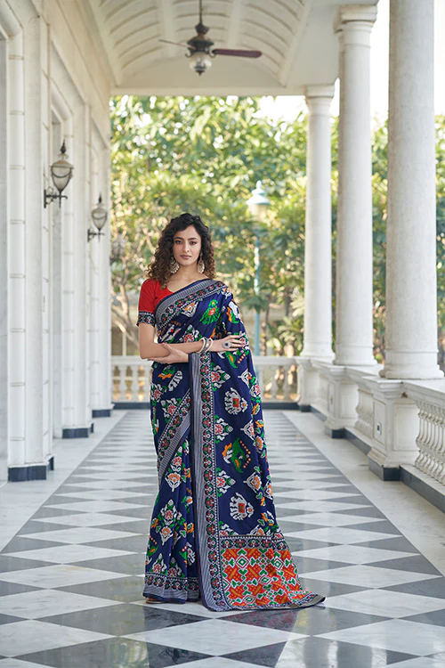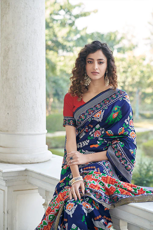 Versatile Wardrobe Essential: This Navy Blue Patola Weaving Silk Saree Collection is a versatile wardrobe essential that can be styled for a range of occasions. The rich navy blue color makes it easy to pair with different accessories and create various looks.