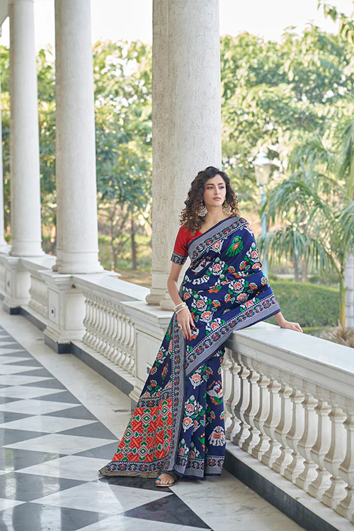 Classic and Timeless: The combination of Patola Weaving Silk and the navy blue color creates a classic and timeless aesthetic. These sarees are perfect for those who appreciate the beauty of traditional craftsmanship.
