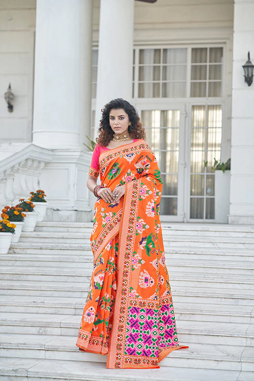 Orange Patola Weaving Silk Saree
