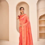 Perfect for Traditional Occasions: This Peach Banarasi Silk Saree with Patola Weaving Silk is perfect for traditional occasions where you want to showcase your appreciation for craftsmanship and style. Whether it’s a wedding, festive celebration, or cultural event, this saree is sure to leave a lasting impression.