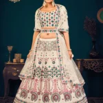 Immerse yourself in the enchanting allure of pearl white, beautifully complemented by the intricate detailing of multi-thread sequins and Gota Patti embroidery. Step into a world where tradition meets contemporary sophistication, and let your bridal journey begin with this Pearl White Georgette Wedding Wear Bridal Lehenga Choli Set. It’s not just an outfit; it’s a reflection of your unique style and the start of a beautiful chapter.