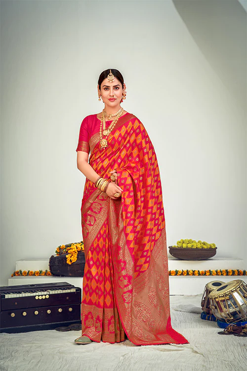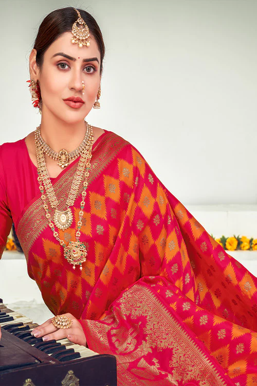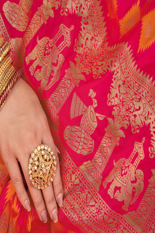 - Work: Banarasi Silk with Zari Weaving