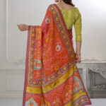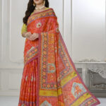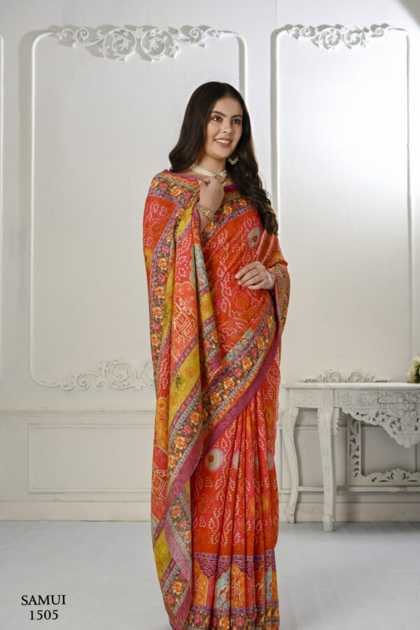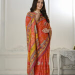 Premium Natural Silk High Definition Jacquard Zari Digital Printed Blouse With Saree – Orange
