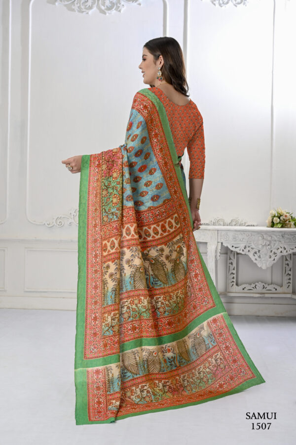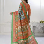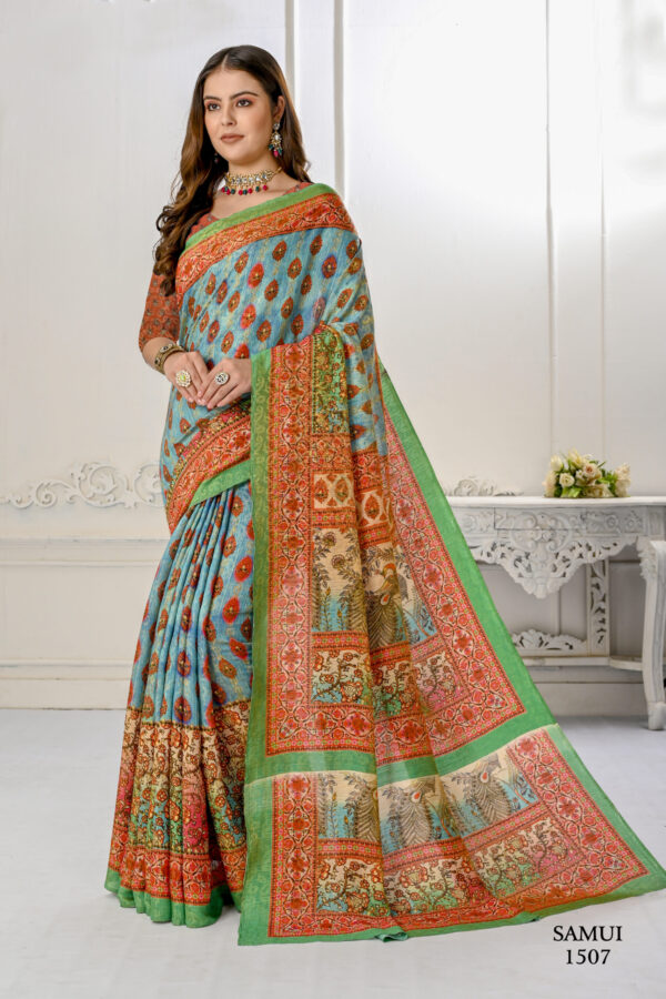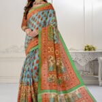 Premium Natural Silk High Definition Jacquard Zari Digital Printed Blouse With Saree – Sky Blue