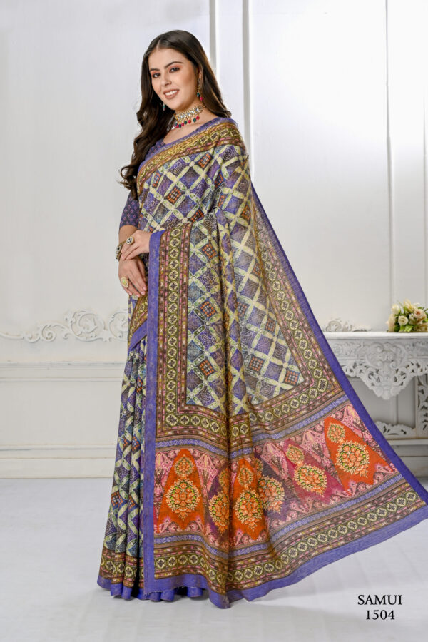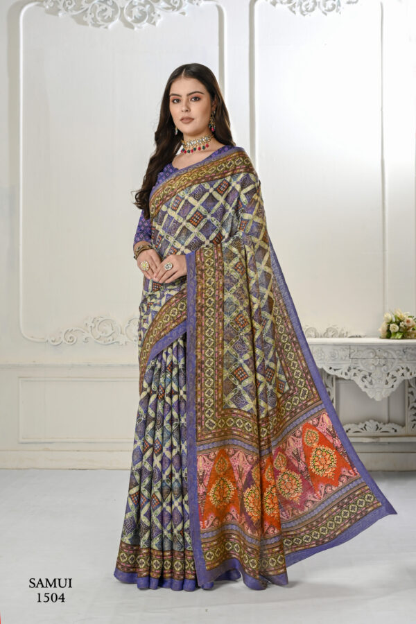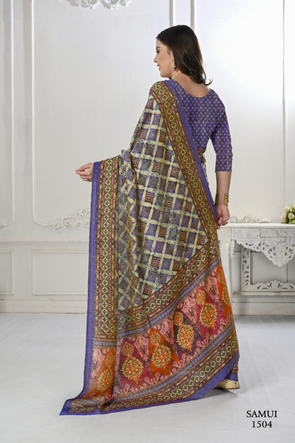 Premium Natural Silk High Definition Jacquard Zari Digital Printed Blouse With Saree