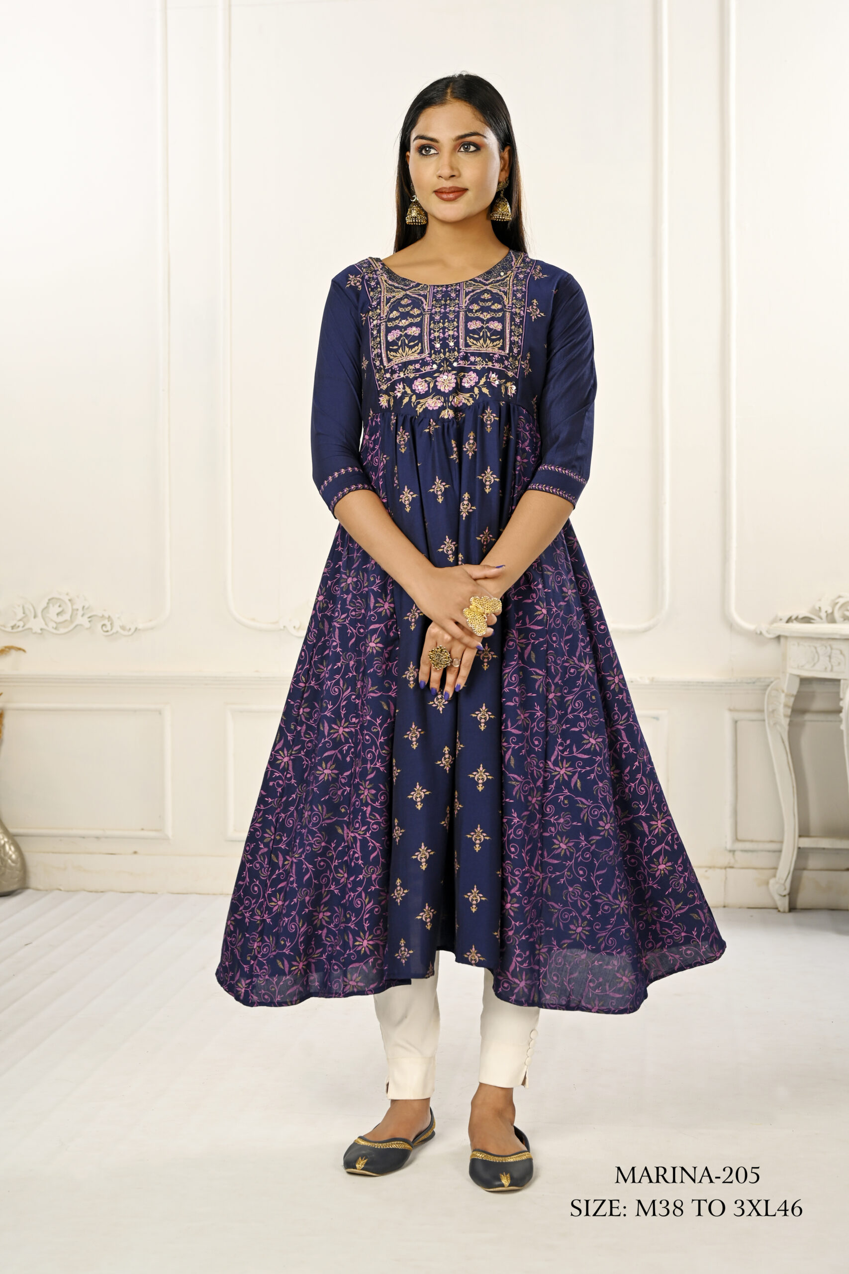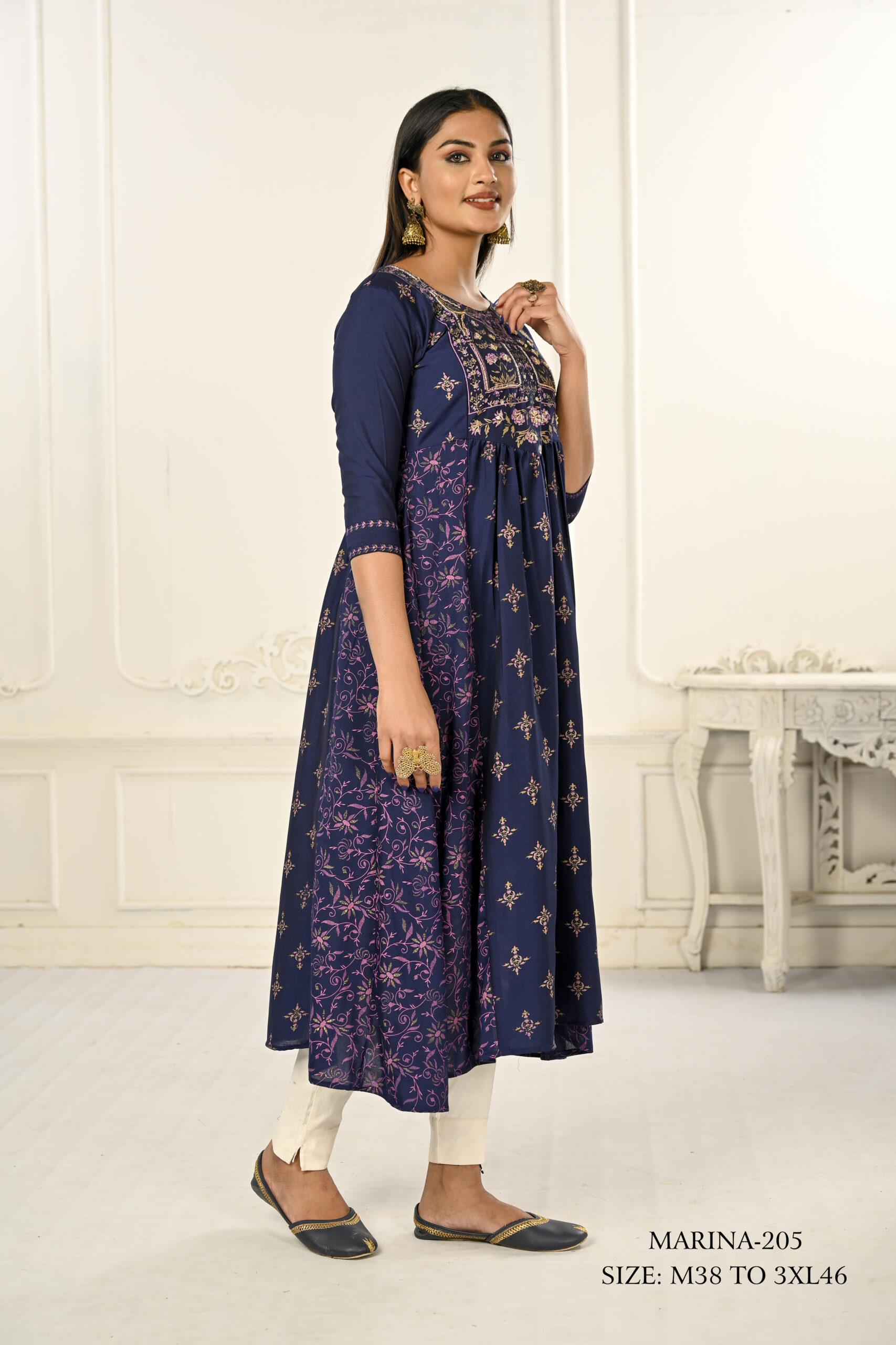 This stunning Purple Cotton Kurti is designed with hand-embroidered patterns to give it an elegant look. Crafted with breathable cotton, this Kurti offers superior comfort and is perfect for any occasion.