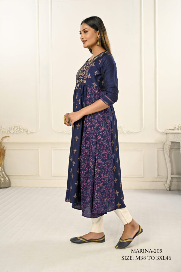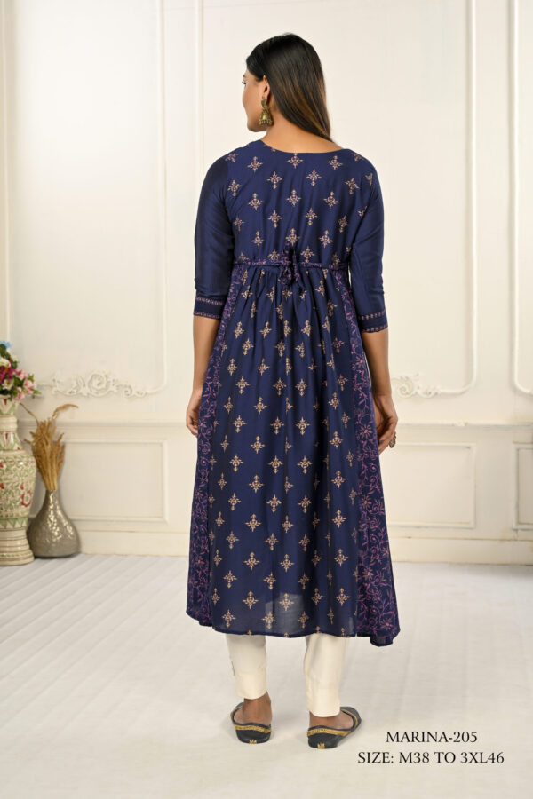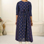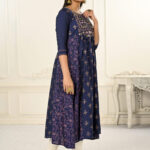 Natural-dyed colours might bleed during the first few washes or rub against the skin & other light-coloured garments. In the artful process of hand block-printing, embroidery work and stitching, variations are likely to come into existence. These irregularities are the hallmark of all handmade products and give each style a unique identity.