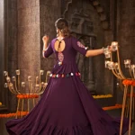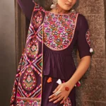 This collection features traditional Navratri designs intricately embroidered with purple thread for a beautiful, unique look. This designer set is sure to make a statement and keep you looking stylish this festive season.