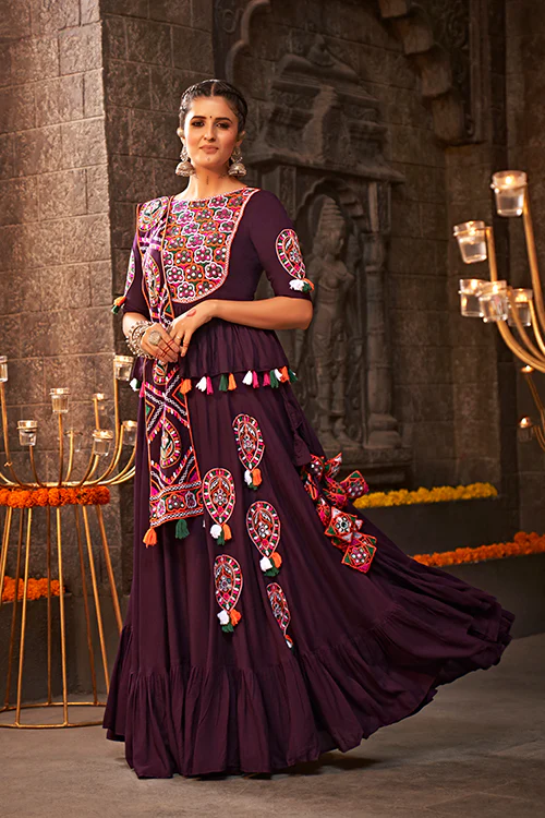 Purple Thread Embroidered Designer Lehenga Traditonal Navratri Collection