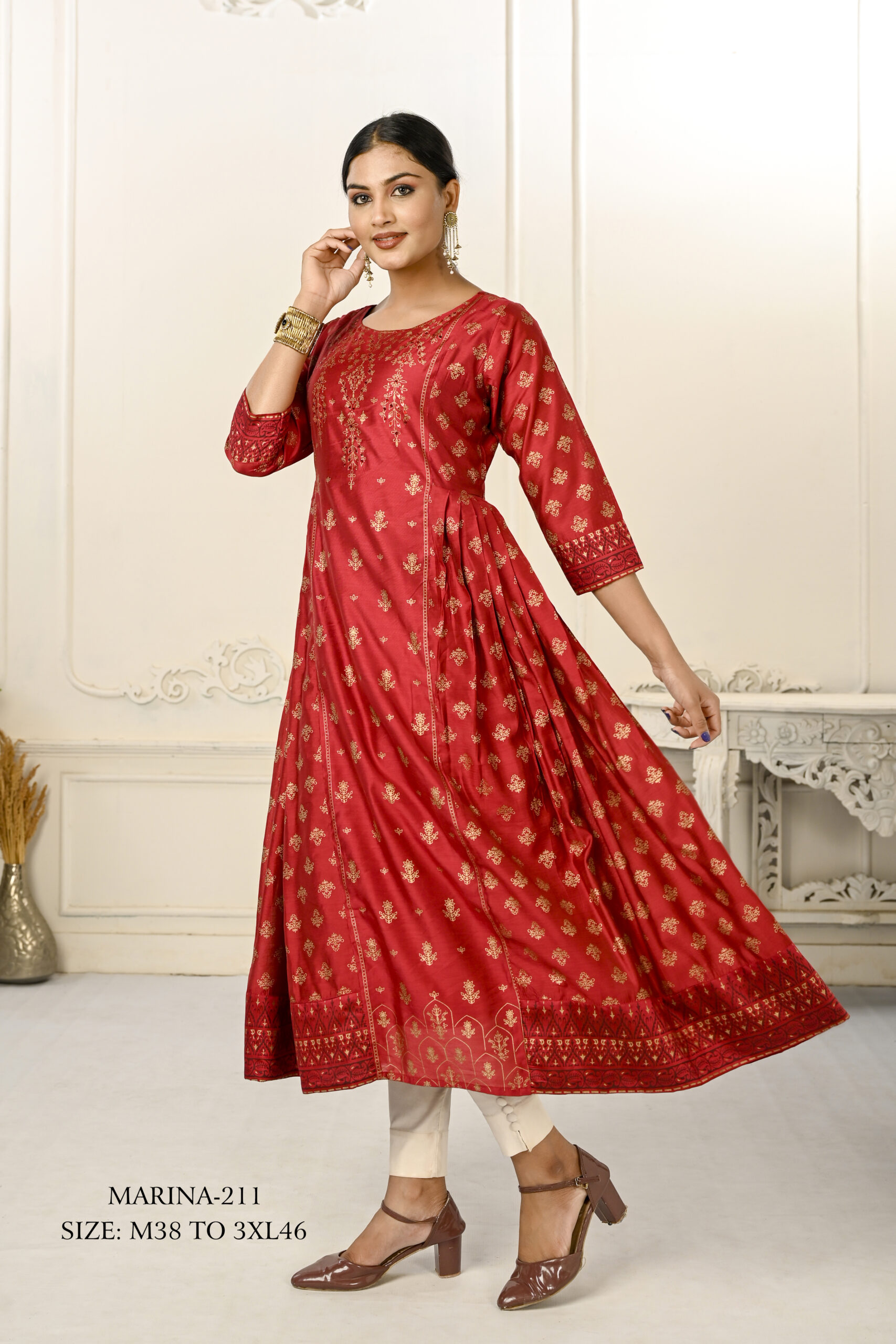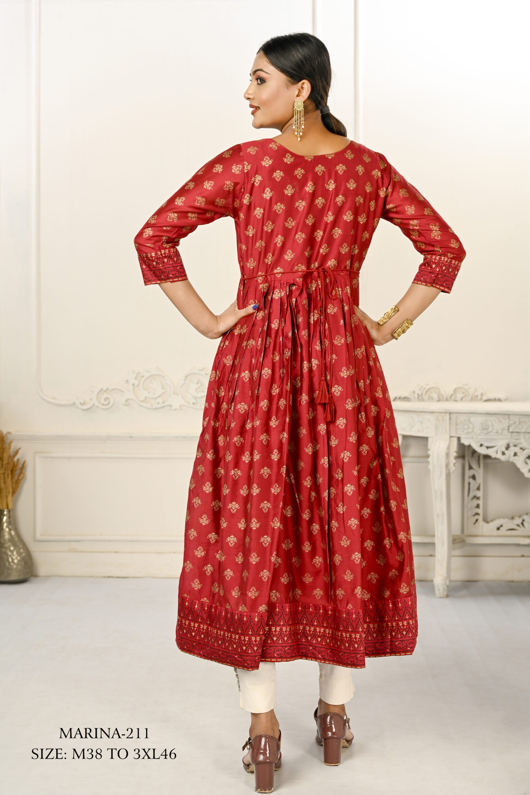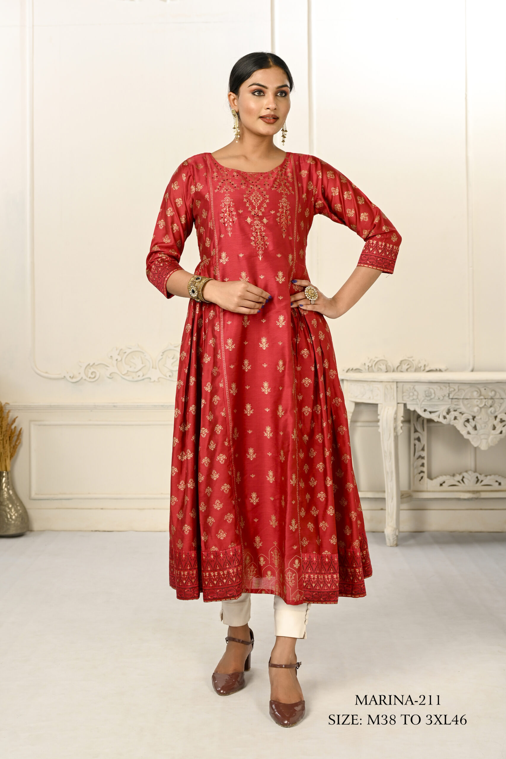 Introducing our Red Cotton with Handprint Light Embroidered Kurtis. Soft, lightweight cotton fabric ensures comfort throughout the day, while a handprint embroidery adds subtle elegance. Made with quality materials, our Kurtis offer breathability and style that is sure to become a staple in your wardrobe.