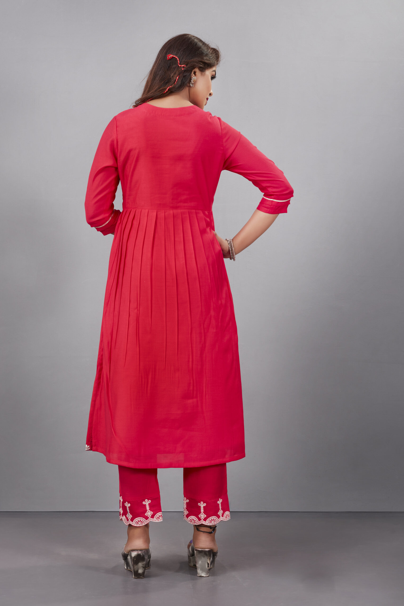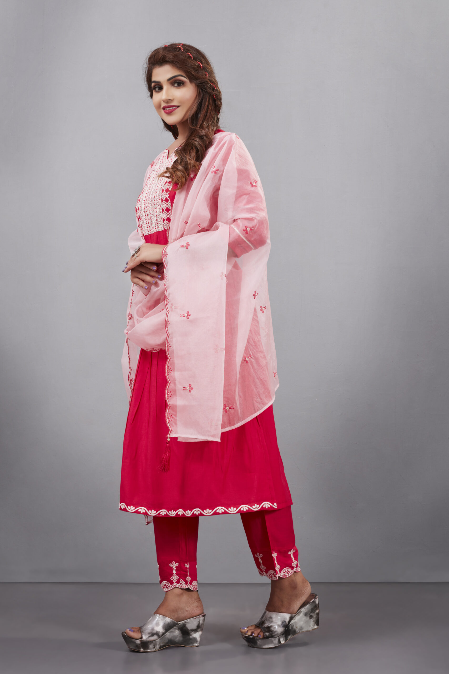 Red Muslin Silk Lucknowi Style Salwar Kameez