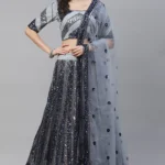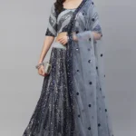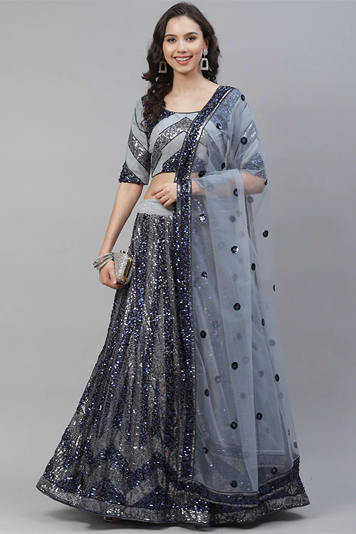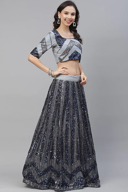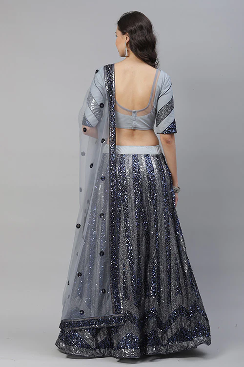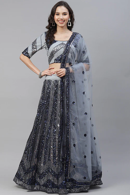 Silver Shimmer: Grey Sequins Embroidered Lehenga Choli Set with Dupatta