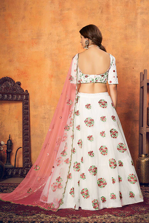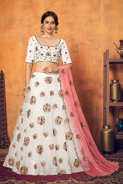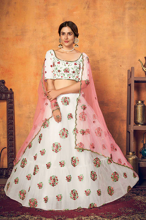 White Elegance: Net Fabric Lehenga Choli