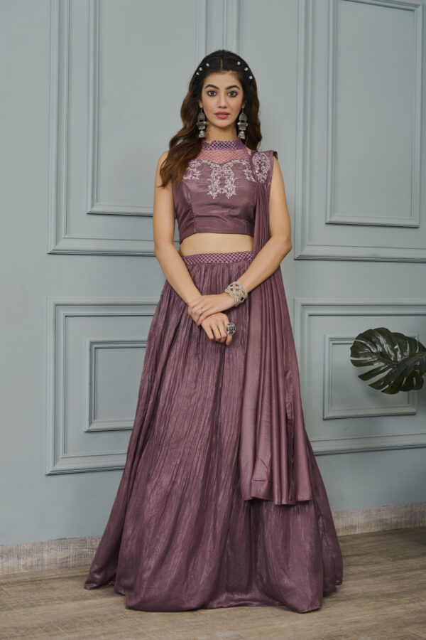 Wine Art Silk Heavy Embroidery Lehenga