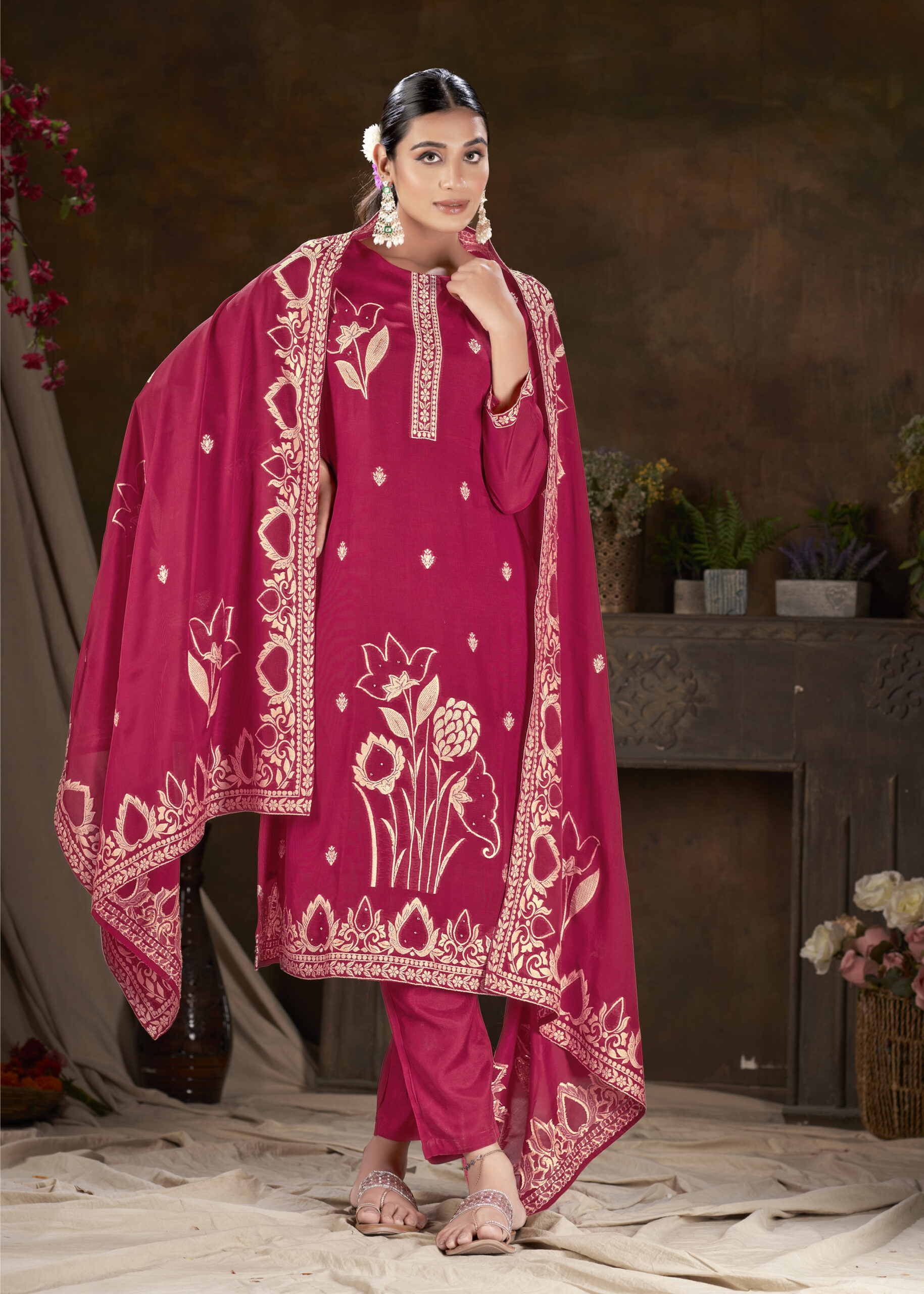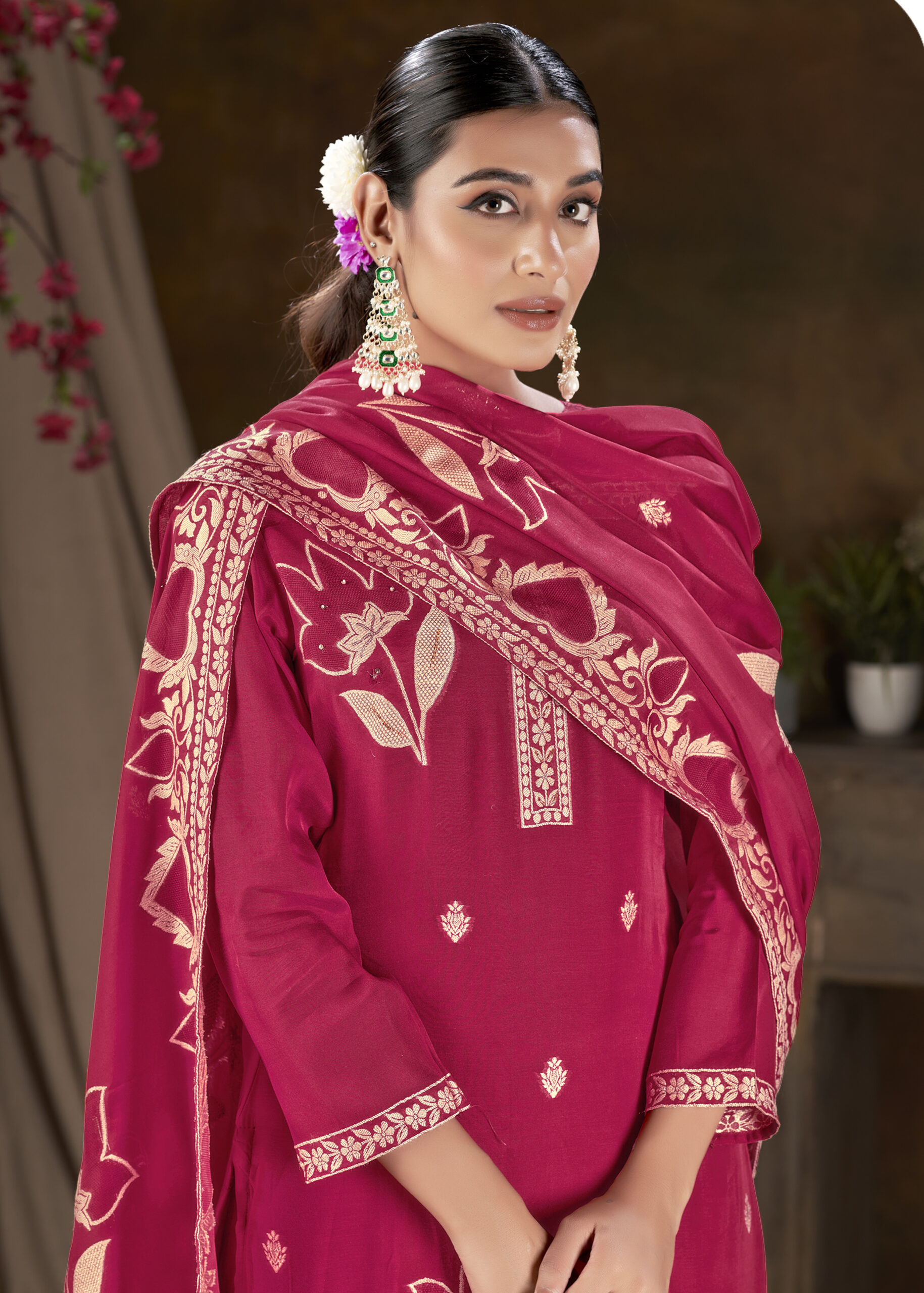 Women Viscose And Jacquard Butta Zari Embroidered Salwar Kameez - Maroon
