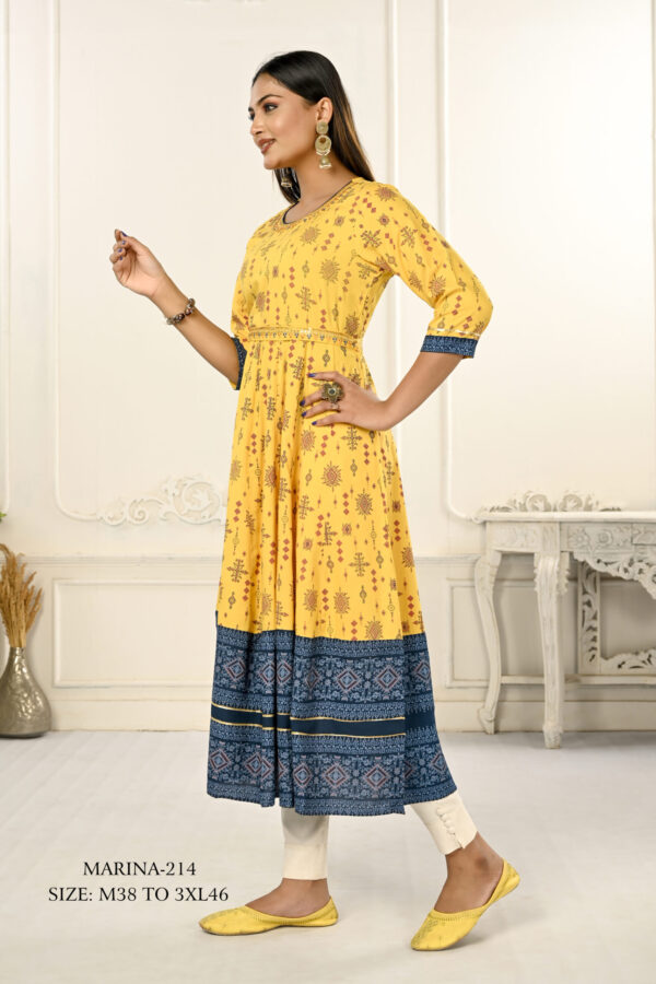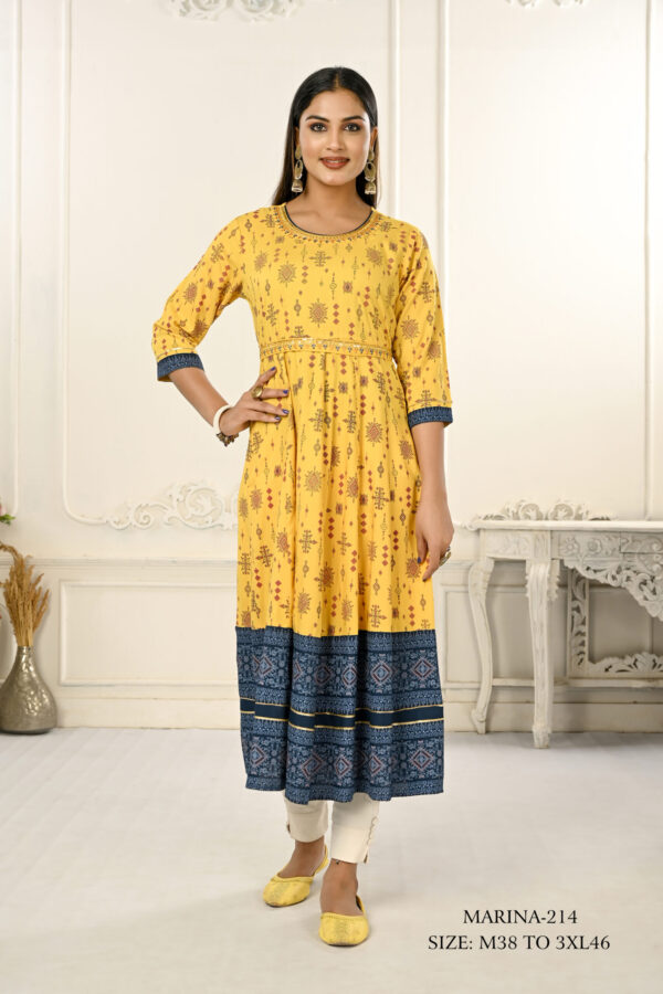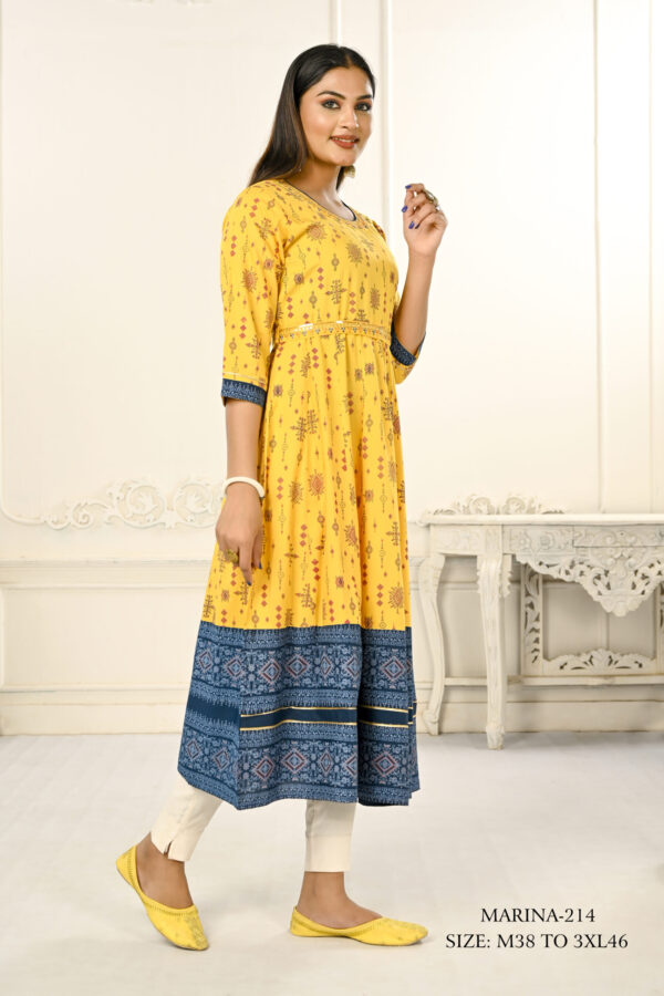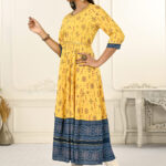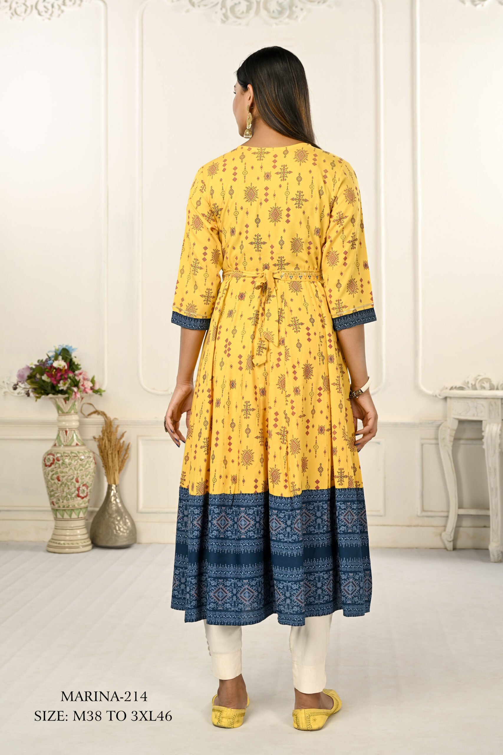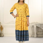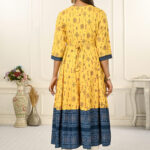Natural-dyed colours might bleed during the first few washes or rub against the skin & other light-coloured garments. In the artful process of hand block-printing, embroidery work and stitching, variations are likely to come into existence. These irregularities are the hallmark of all handmade products and give each style a unique identity.